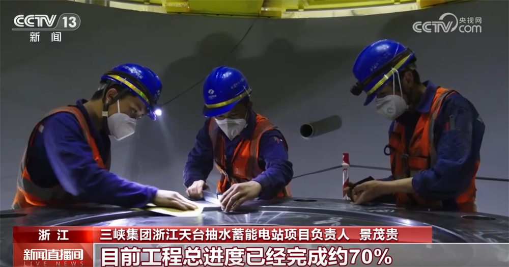 三峡集团浙江天台抽水蓄能电站项目认真人景茂贵称:“为确保本年年尾首台机组投产发电,五一时间,浙江天台抽蓄电站2200众人恪守现场,饱动工程筑树,目前工程总进度已杀青约70%。”