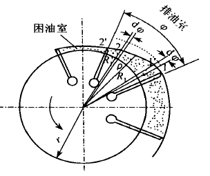 dV=b(R21- r2)dφ (1)然而当叶片排油靠拢尽头时,转子同样转过dφ的轻细角度,叶片从2′到2点扫过dφ角扇形体积为dV′,则