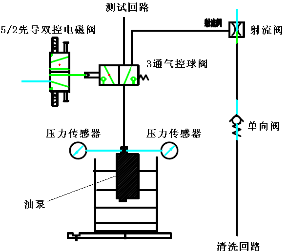 本文所述测试体例的策画中,油道体例的策画牢靠性以及压力脉动信号数据采撷的机会将对最终压力脉动数值的筹划出现致闭要紧的影响。本文采用了分时把握体例对油道举行切换,即通过无误地把握先对油泵举行平常加电冲洗,将油泵内的异物举行先行排空,同时对油泵内腔洗涤并充满测试液,然后正在不掉电的状况下将油道切换进测试回道,同时施加油泵平常劳动做必须的压力,正在全盘供油体例安静后对压力信号举行采撷。测试体例液道道理图如图3所示。