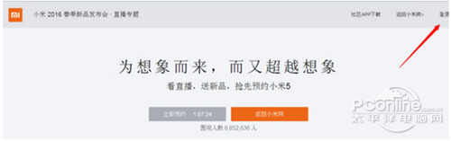 程序2、正在进入到网站的主页后,即可看到满屏的合于小米5的消息,点击页面上方的登岸按钮。